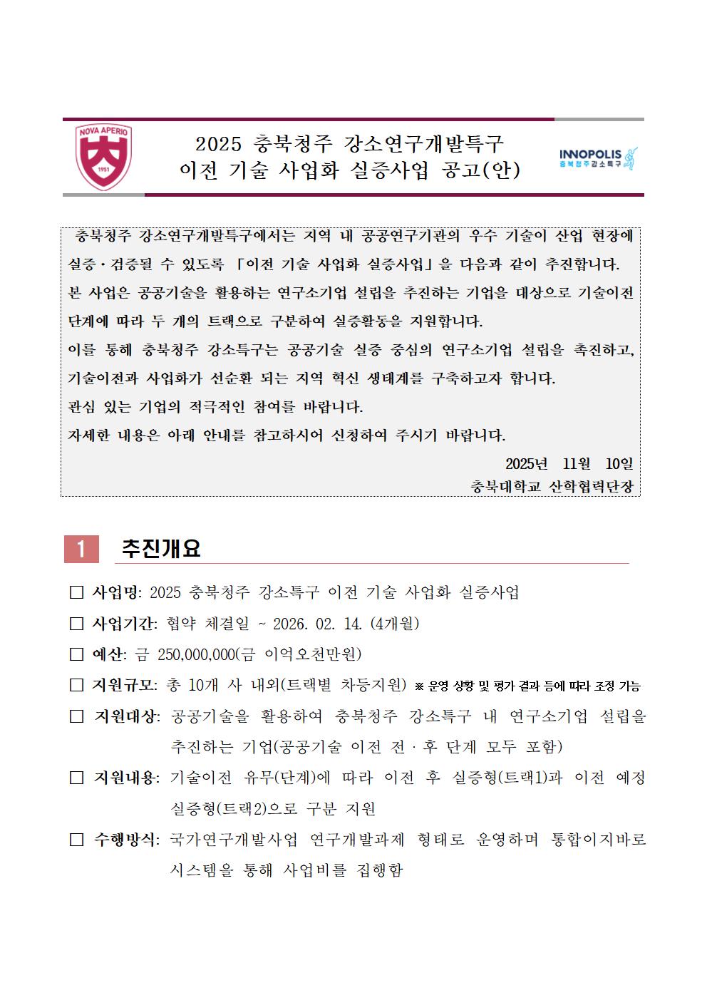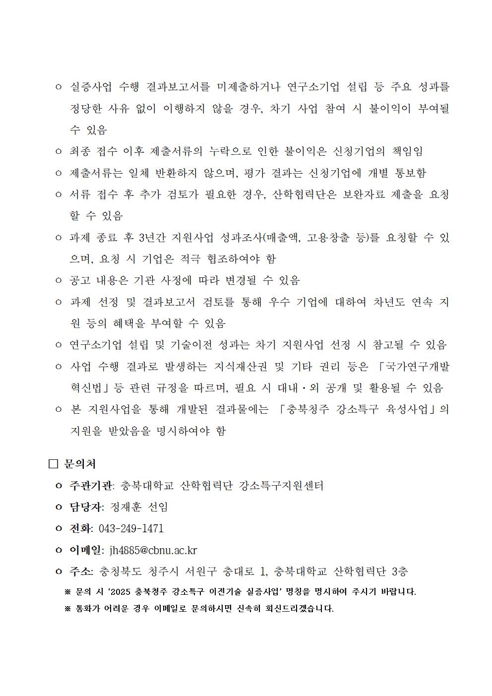 [공고문&신청서]2025 충북청주 강소특구 이전 기술 사업화 실증사업.zip
